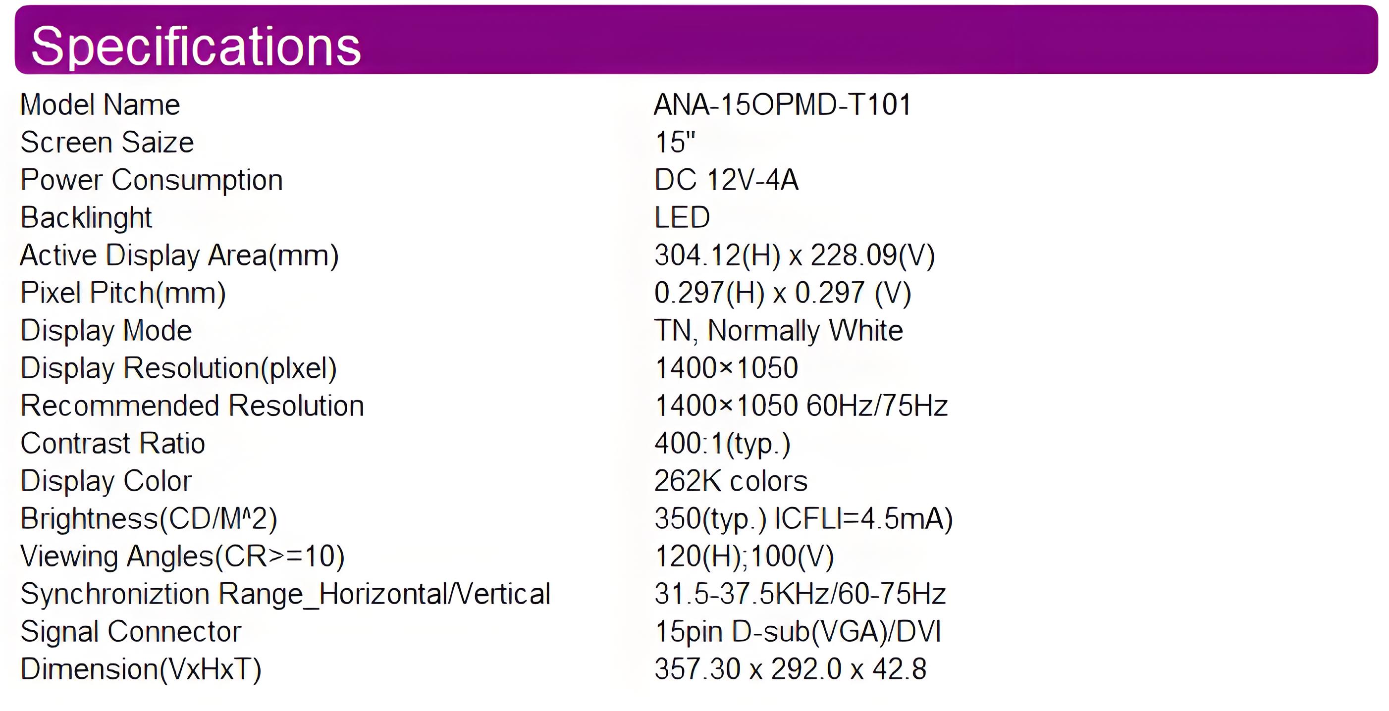 Brightness: ≥ 350cd/㎡;
