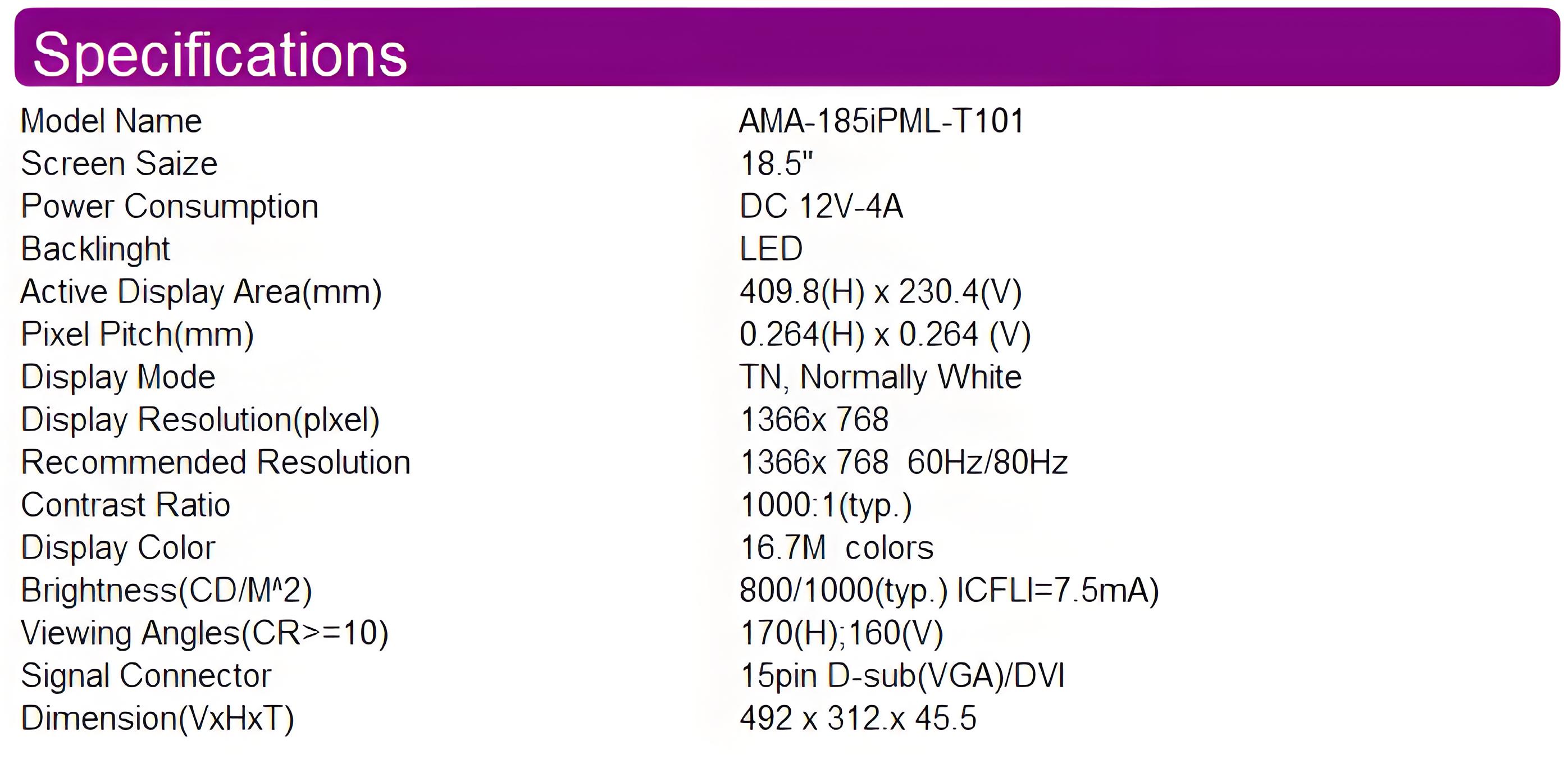 Viewing angle: 85/85/85 (L/R/U/D) (wide viewing angle);