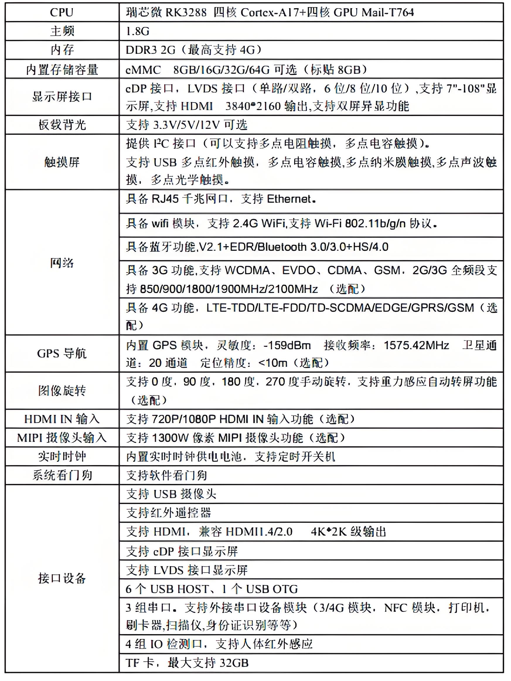 Product features: 10.1 inches 1280*800 RK3288 4-core 2GB memory Storage: 16GB Capacitive 10 point touch 350 brightness