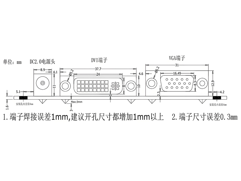 Input interface: DC2.1 Phoenix Tail Terminal, VGA, DVI