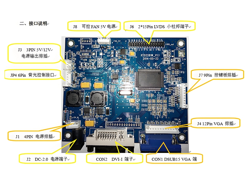 The RTD2281W-V1.1 board supports single/dual channel 6bit/8-bit LVDS interface TFT LCD.